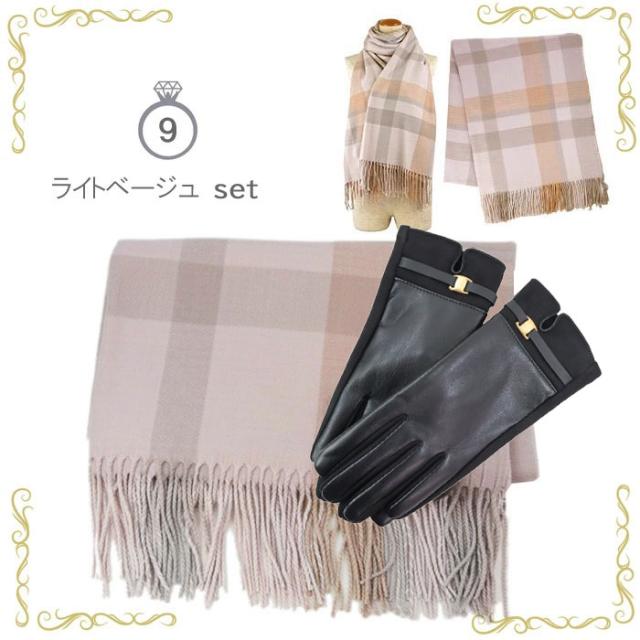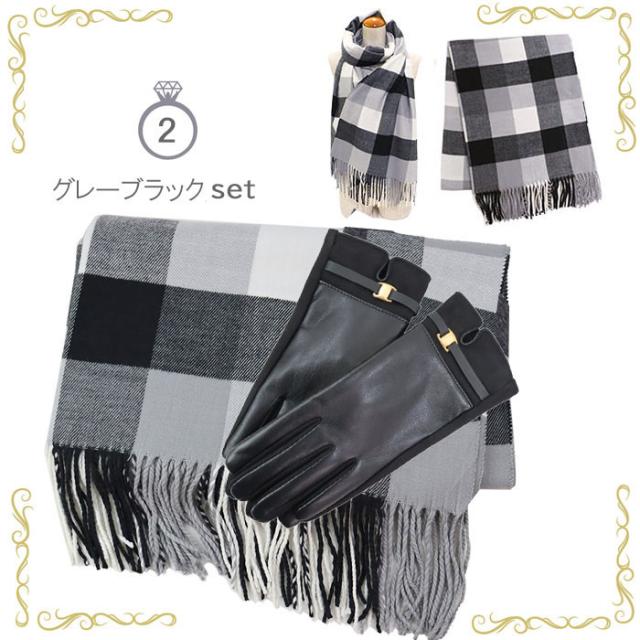 | 【特徴】 | ■ストール 大きなサイズで使い勝手抜群のストール。 カシミアのようなしっとりとなめらかな手触りが魅力的。 ■手袋 なしなやかなエコレザーを使用した柔らかな手袋。 内側は起毛しており、指先までしっかり暖か。 手のひら側は女性らしく上品なスウェード風デザイン、 手の甲側にはゴールドカラーのバックルをあしらいさりげないアクセントに。 人差し指にはタッチパネル操作可能な刺繍入りです。 |