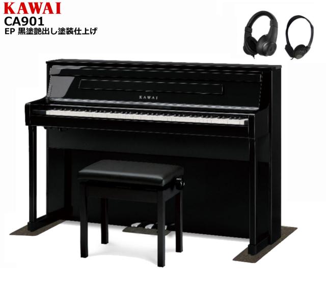 【45,500円OFFクーポン有☆早い者勝ち】KAWAI カワイ DigitalPiano 電子ピアノ 88鍵 木製鍵盤 響板スピーカー搭載 CA901 EP 黒塗艶出し塗装仕上げ 防音/防傷マット ヘッドホン