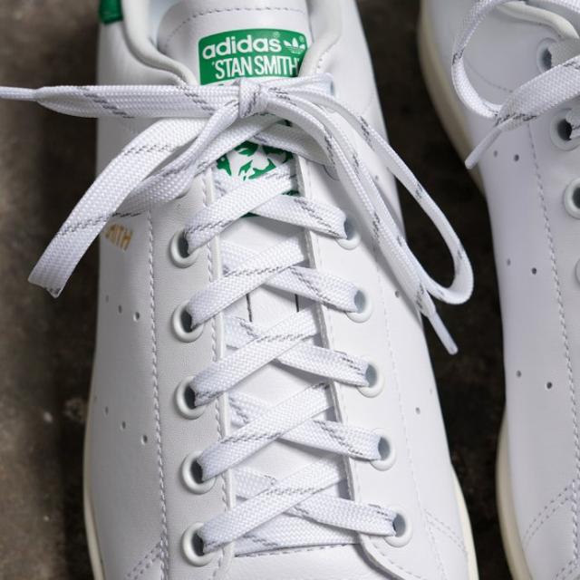 反射シューレースは丸紐タイプが一般的ですが、スニーカーに自然に溶け込む、平紐タイプでのリリースとなります。