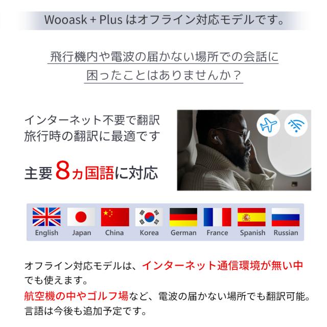 翻訳機 イヤホン Wooask M6 PLUS AI翻訳機 オフライン版 wooask ウーアスク Bluetooth 通訳 127ヶ国語対応 インターネット接続不要 英語 日本語 韓国語 中国語 フランス語 ドイツ語 イタリア語 ロシア語 ビジネス 旅行
