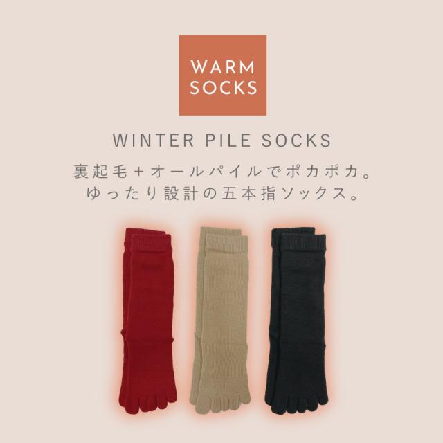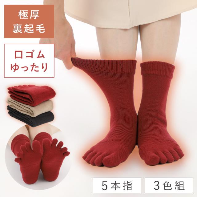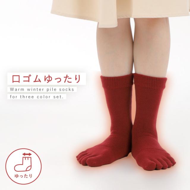 履き口 ゆったり 5本指ソックス レディース 冬 靴下 暖かい 【3色組】 22-25cm 裏起毛 厚手 秋冬 五本指靴下 5本指ソックス 【 極厚の秋冬靴下 】 口ゴムゆったり 高齢者 シニア まとめ買い 3足 セット ゆったり丈長5本指パイルソックス