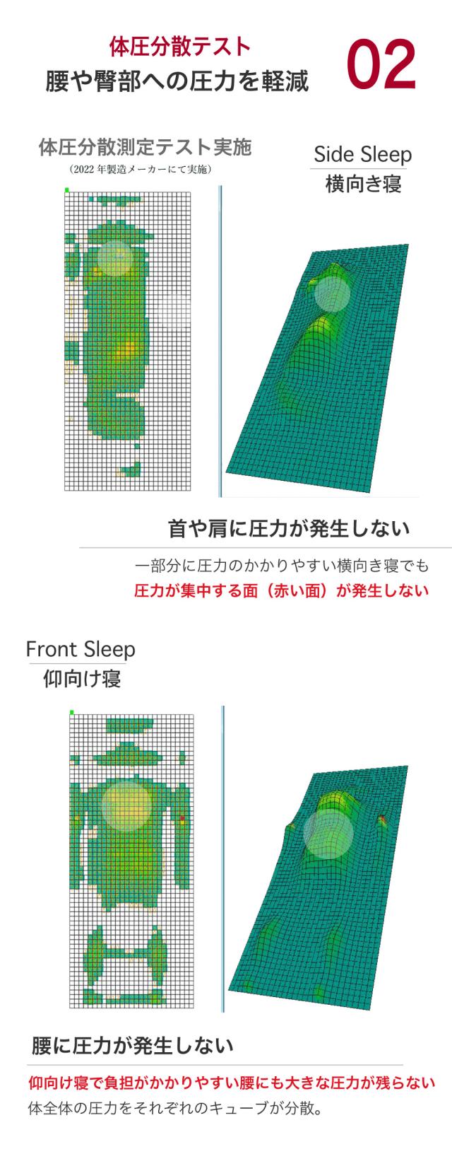 体圧分散と吸収力を反発力で支え、体への負荷を軽減。