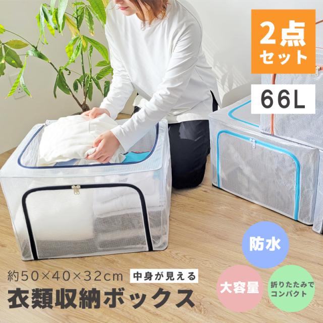 【2点セット】 収納ボックス 大容量 軽量 折りたたみ コンパクト 布団収納 ケース 収納ケース 透明ボックス ダブルファスナー 一人暮らし 防水 中が見える 押し入れ収納 衣類ケース おもちゃ収納 省スペース 実用的 多機能 実用デザイン 丈夫 多用途 衣替え 洋服 たくさん入る