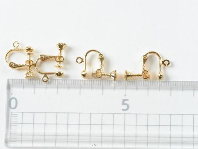 耳たぶの厚さに合わせてネジで挟む強さを調節し、バネを開閉して着脱するネジバネ式のイヤリング金具です。