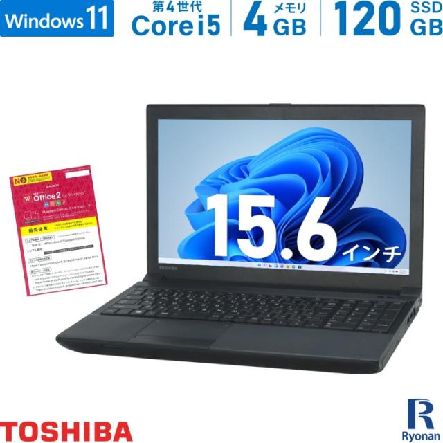 ノートパソコン 中古 テンキー搭載 東芝 TOSHIBA dynabook おまかせ 第4世代 Core i5 メモリ:4GB 新品SSD:120GB 新品 キーボード 交換可 DVD-ROM Windows 11 搭載 | Office付 パソコン 中古パソコン pc ノートpc 中古pc 中古 中古パソコン