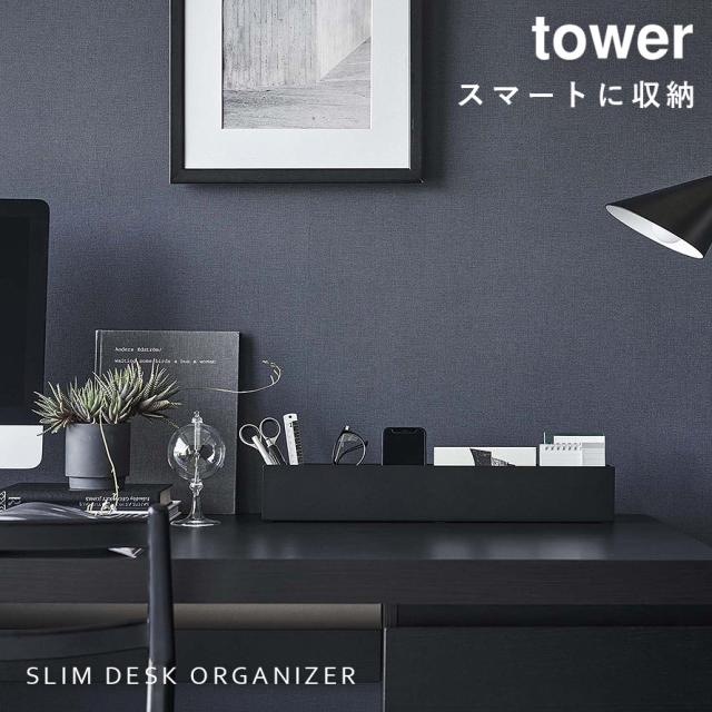 スリムデスクオーガナイザー tower 山崎実業 小物収納 デスク周り 文房具 片付け スリムデスクオーガナイザー タワー