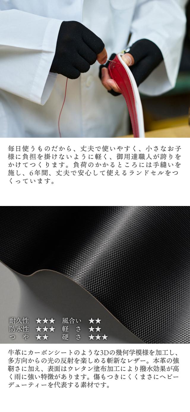 キズが目立ちにくく、雨や汗にも強く、活発に動き回るお子様にも安心して使っていただけるつくりになっています。