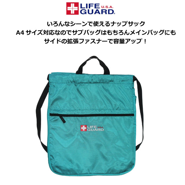 ナップサック 子供 男の子 ナイロン LIFE GUARD ライフガード ナップサック 2lg1190np 体操着入れ 巾着袋 体操服入れ 小学校 高学年 低学年 入学準備 巾着リュック 体操着袋 ランドセルの上 女の子 修学旅行 林間学校 プールバッグ サブバッグ ナップザック 入学グッズ 緑 紺