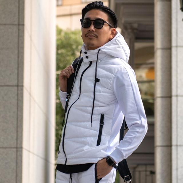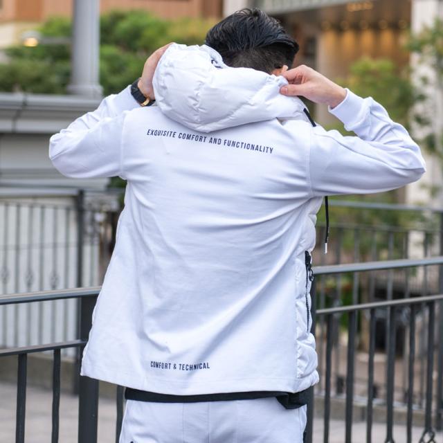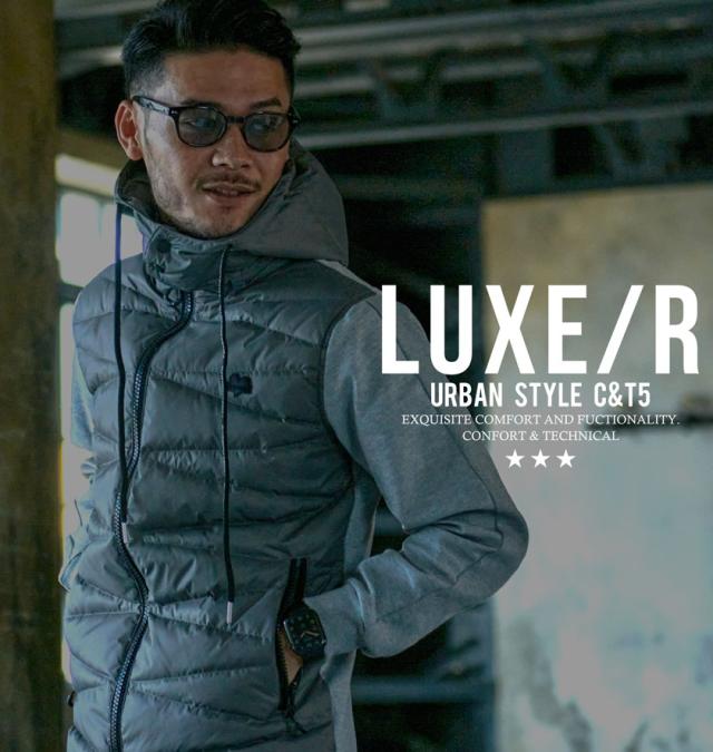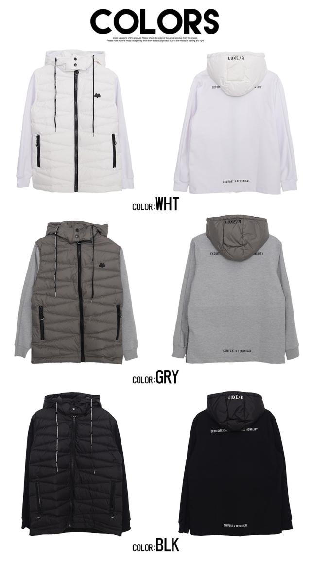 ダウン フェザー ダウンジャケット ブルゾン 中綿ジャケット フード着脱 メンズ アウター 大人 オシャレ フード付 ジャケット 異素材 ポリエステル あたたかい 防寒 ホワイト ブラック グレー 黒 白 シンプル ユニセックス カジュアル 秋 冬 LUXE/R ラグジュ 20代 30代 40代 メンズファッション 東京 プレゼント 誕生日 記念日 贈り物配送について