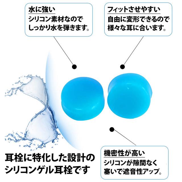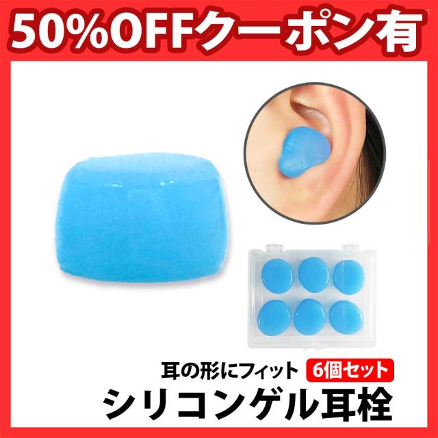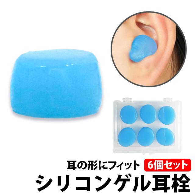 50%offクーポン有 耳栓 シリコン 水色 3組(6個)セット ゲル ソフト 自由形状 防音 遮音 学習 オフィス 耳にフィット 携帯 柔らかい シリコン耳栓 睡眠 旅行 軽減 着け心地 みみせん 耳せん シンプル フリーサイズ グミタイプ いびき