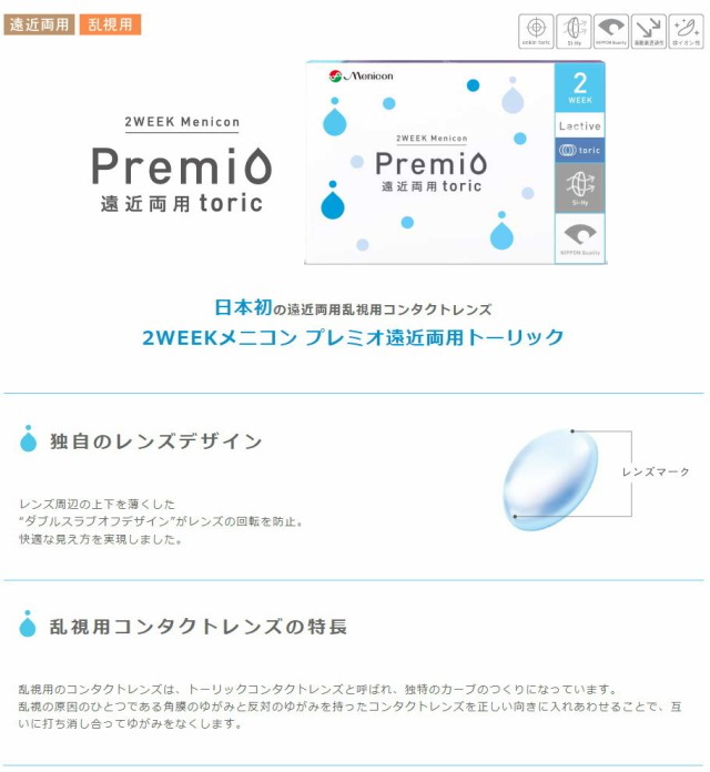 メニコン プレミオ 遠近両用 トーリック(6枚) 8箱 ポスト便 送料無料 乱視用 2週間使い捨て 2week マルチフォーカル premio toric