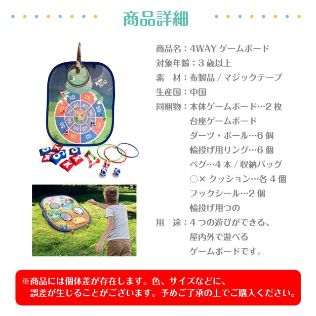 ゲームボード 4種類 〇Xゲーム 輪投げ 的当て ボール投げ 知育玩具 子供 クリスマス プレゼント 室内 室外 遊び 4w-g-board agesugi_sog