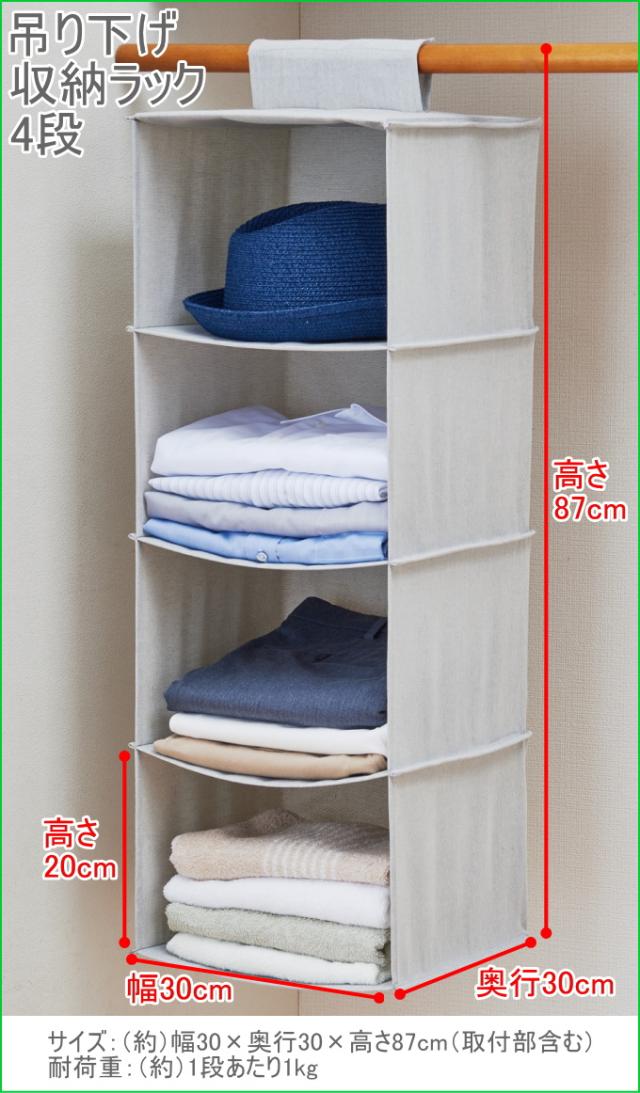 エコな素材を使用した吊り下げ収納ラック 4段 N-7936 収納ラック 吊下げ 4段 eco R-PET リサイクルPET素材 クローゼット パイプハンガー