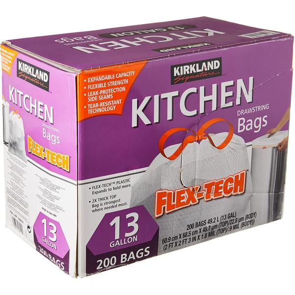 カークランドひも付きゴミ袋 Flex-Techのごみ袋は伸びやすく、裂けにくくできています。 ひも付きなので、しっかりと閉められます。 キッチン、ポータブル、旅行、ビジネスギフトなど様々なシーンで使えます。