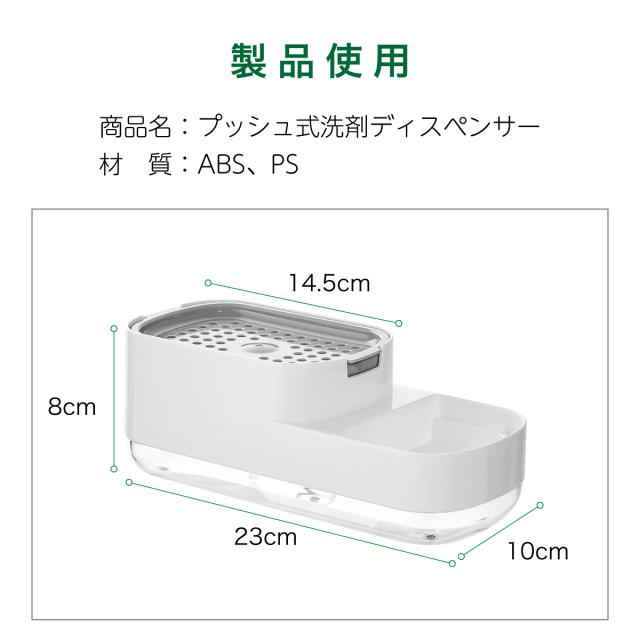 洗剤 ディスペンサー プッシュ式 スポンジ スポンジホルダー ソープ 収納 キッチン用品 洗剤容器 便利グッズ soap-dispenser