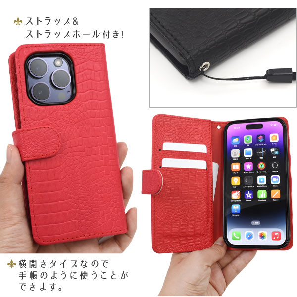 スマホケース iPhone14Pro アイフォン14プロ クロコダイルレザーデザイン 手帳型 ケース 保護 カバー アイホン iphone14プロ スマホ 手帳型 スマホカバー アイフォン カード入れ 定期入れ カード 画面 iPhone 14 アイフォン 14 アイフォン14 赤 茶 黒