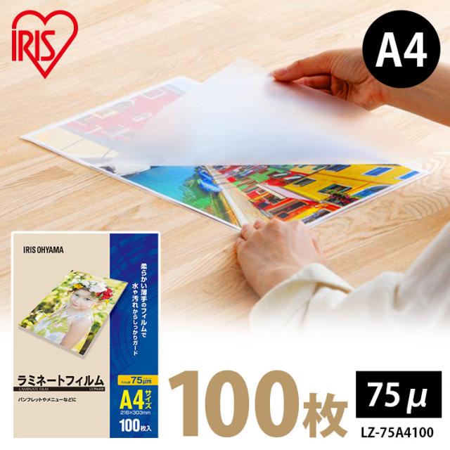 ラミネートフィルム A4 100枚入 75μ LZ-75A4100 ラミネート フィルム A4 100枚 75μ 75ミクロン 75マイクロメートル ラミネート加工 ラミネーター 4967576651820 アイリスオーヤマ