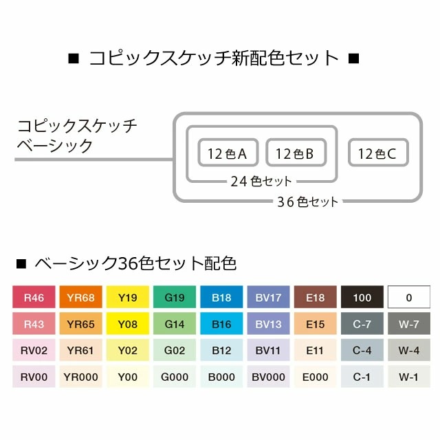 コピックスケッチ ベーシック 36色セット コピックセット 日本製 イラスト マーカー コミック マーカーペン アルコール染料インク エアーブラッシング COPIC Sketch 送料無料