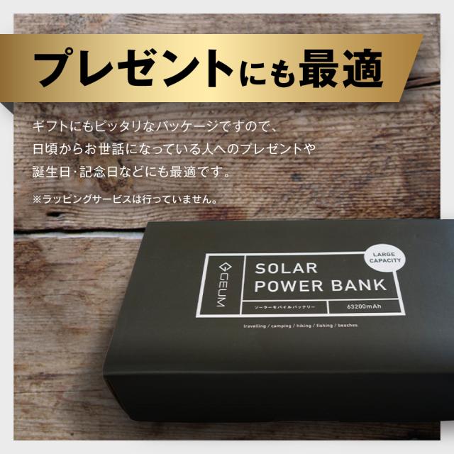 63200mAh大容量バッテリーを採用しているので、モバイルバッテリーやLEDライトを快適に使用することができます。2つのUSBポートがあるので、2台同時に充電する事が可能です。※充電量の目安ですので、商品の仕様や状況により充電回数が異なる場合があります。