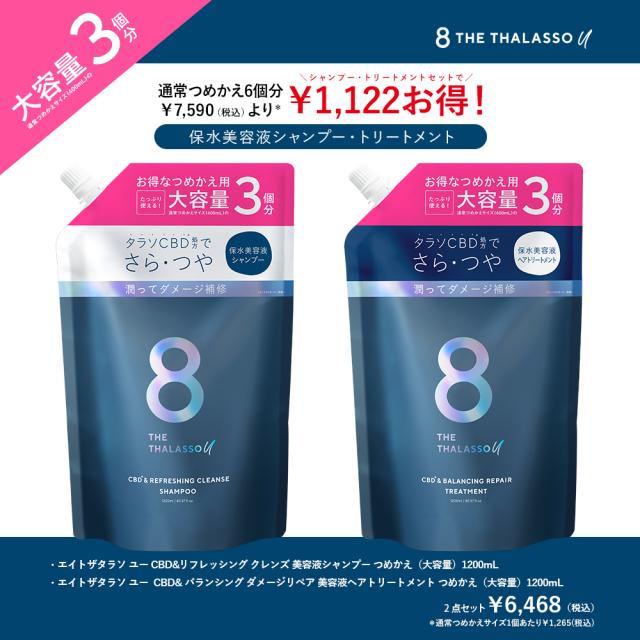 シャンプー トリートメント つめかえ セット エイトザタラソユー 8 THE THALASSO u CBD&リフレッシング クレンズ 美容液シャンプー 詰め替え 大容量 1200mL