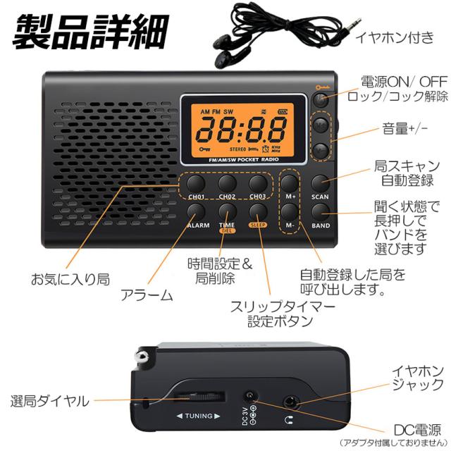 商品内容:ポケットラジオ x1、 イヤホン x1、日本語取扱説明書 x1(電池&ACアダプタは付属しておりません)。