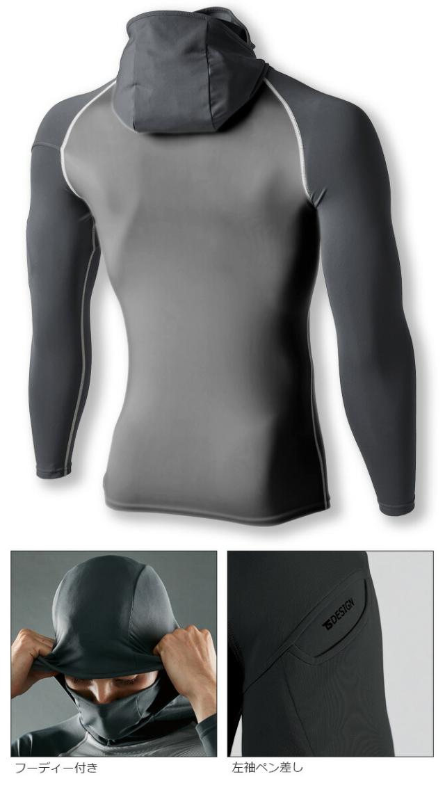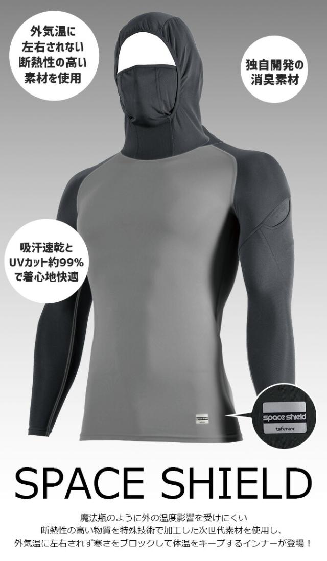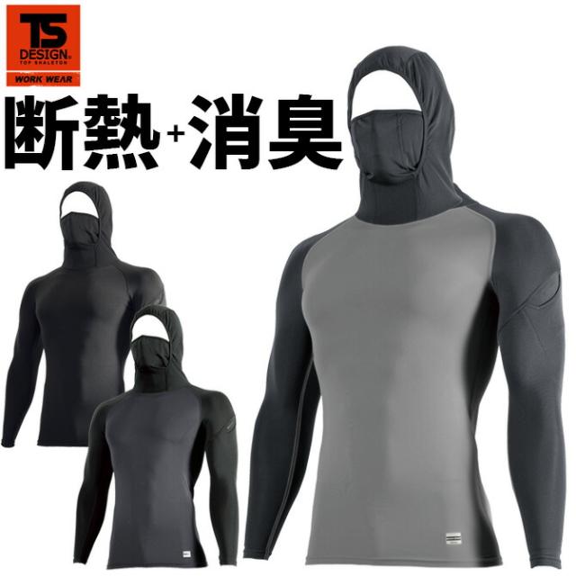 【在庫限り特価2,600→1,980円】【1点までネコポス可】スペースシールド ロングスリーブフーディー TS DESIGN 80151 メンズ ワーク インナー パーカー オールシーズン 通年 春夏秋冬 断熱 消臭 ストレッチ 作業服 作業着