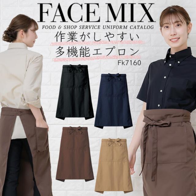 エプロン 前掛け 胸付き サロンエプロン カフェエプロン FACEMIX fk7160 ユニセックス 男女兼用 飲食店 サービス業 フード ユニフォーム レストラン カフェ 制服ボンマックス シンプル おしゃれ カジュアル 【送料無料】