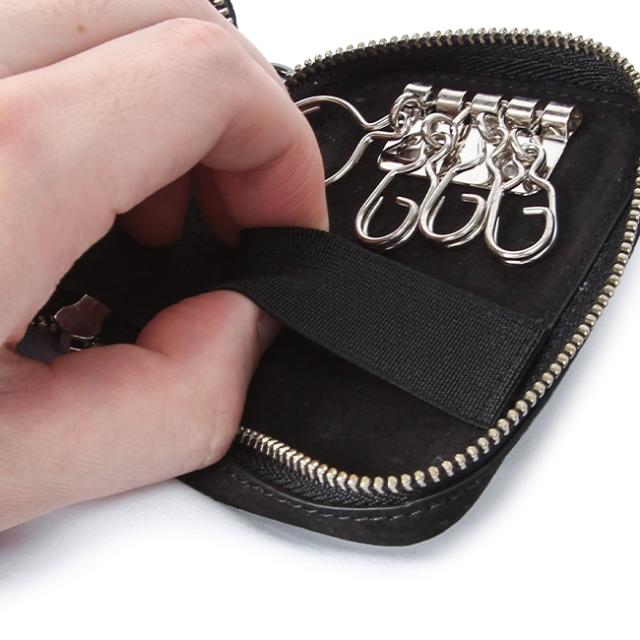 | 本体内装は片側に4連キーリングとスマートキーなどを固定するゴムテープを配置しております。もう片側はフリーポケットを配しております。 本体使用レザーはポルトガル、ヴィーラ・モレイラにある1968年創業のタンナー『Curtumes Iberia S.A.社』のレザーを採用。ヨーロピアンブルの原皮を使用したヌバック型押しレザーはクロム鞣し染料仕上げとなっており、柔らかな手触りで経年変化を楽しめる上質なレザーとなっております。また付属キーリングはアメリカ軍にも納入実績のある USA DURAFLEX 社製のリフレクターホックを使用しております。 「 Curtumes Iberia S.A - PORTUGAL 」 Curtumes Iberia S.A はポルトガルで55年以上の歴史があり、皮革製品の牛革の製造過程に焦点を当てた皮革業界を牽引しています。長年に渡り、製造の一貫性と品質を備えた最高の革を開発することを目指して常に環境に配慮し、デザイナーやブランドと緊密に協力し、常に最も革新的なコレクションをクライアントに提示し常に新しい技術と設備を備えたタンナーです。 |