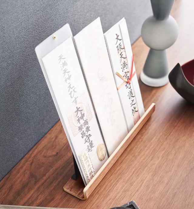 神札スタンド RIN 山崎実業 6141 6142 神棚 リン ワイド モダン お札立て お札置き お札受け 札差し お守り 収納 祀る 木製 天然木 ホワイト ブラック シングル おしゃれ スタイリッシュ シンプル 馴染む インテリア おふだ 複数 定位置 簡易 棚上 卓上 自立 コンパクト
