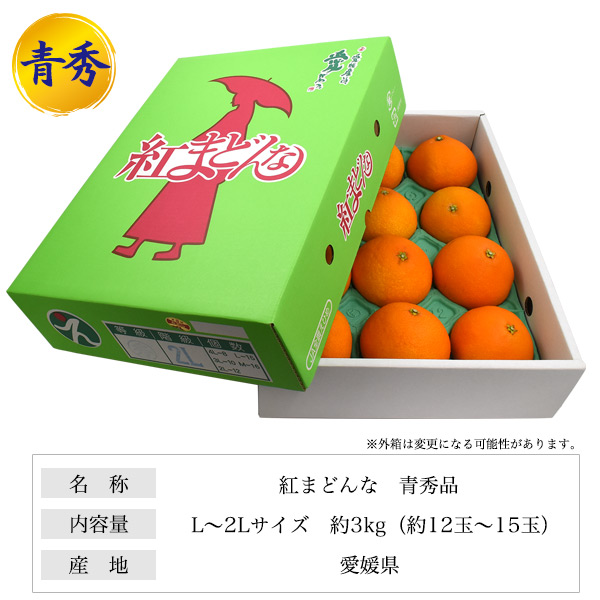 紅まどんな 贈答用 青秀 約3kg L〜2Lサイズ (約12〜15玉)みかん 愛媛県産 箱売り 3キロ 12個〜15個 高級みかん ミカン 紅マドンナ べにまどんな 贈り物 お取り寄せギフト ご自宅用 国産 愛媛 甘い 美味しい 果物 お歳暮 御歳暮 産地直送 送料無料