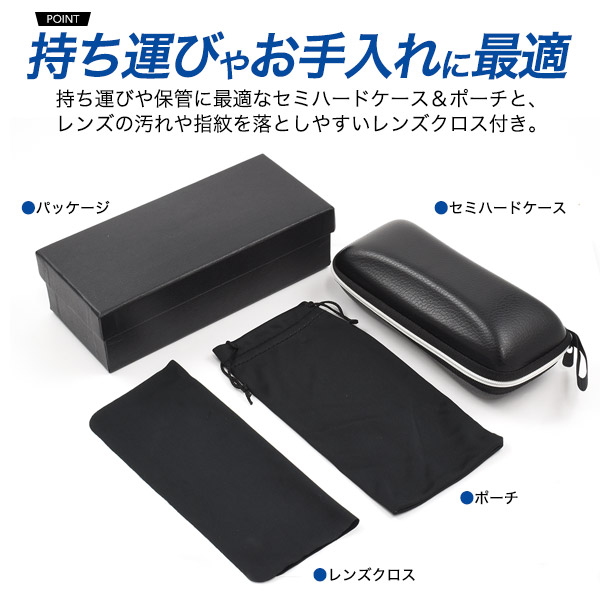 偏光サングラス・セミハードケース・ポーチ・レンズクロス・偏光確認テストカード