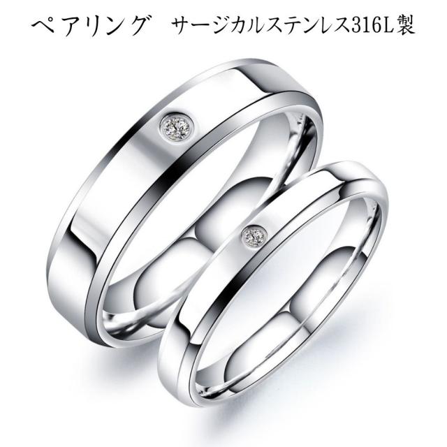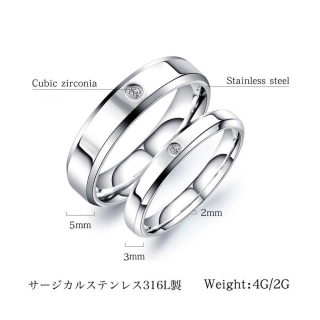 サージカルステンレス316L製 1粒 CZダイヤ(キュービック・ジルコニア)シンプル ペアリング カップル 2個セット