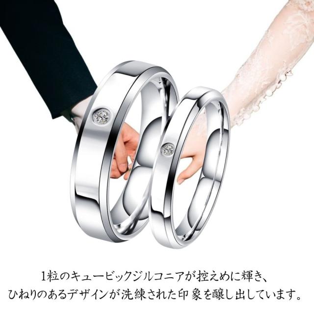 サージカルステンレス ペアリング 金属アレルギー対応 カップル お揃い ステンレスリング 1粒 CZダイヤ(キュービック・ジルコニア)シンプル リング レディース メンズ 1粒 ジルコニア シンプル ひねり 細身 上品 おしゃれ 指輪 マリッジリング 結婚指輪 2本セット価格