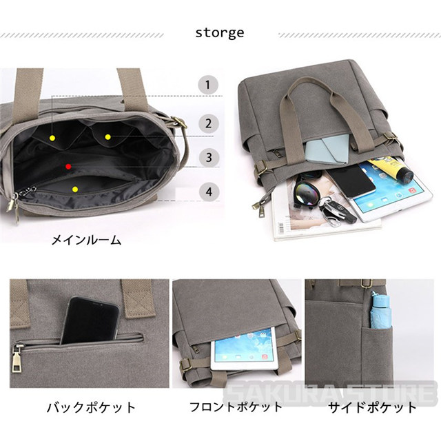 トートバッグ ハンドバッグ メンズ レディース キャンバス 斜め掛け 肩がけ 2WAY ビジネスバッグ A4 大容量 多機能 撥水 通学バッグ 通勤 通学 アウトドア 軽量