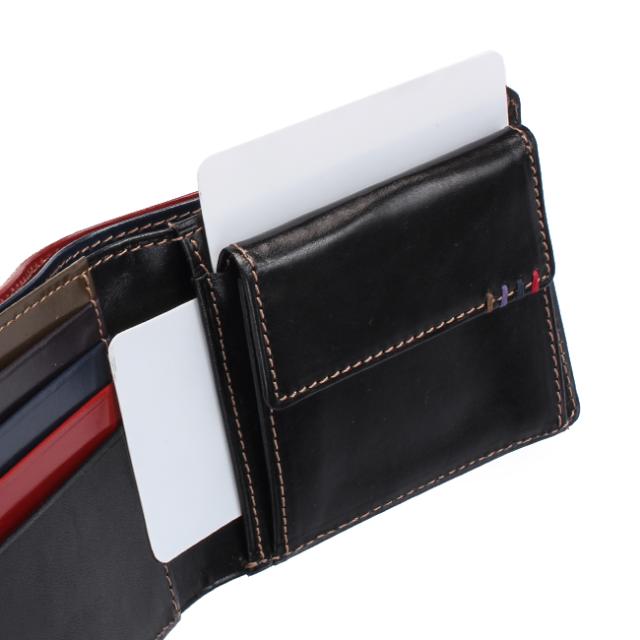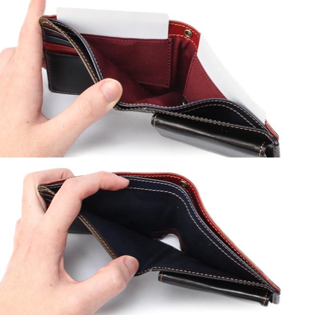| カラフルな内装のギャップが魅力 タケオキクチ 二つ折り財布 革の質感を重視したシンプルなフェイスと、カード段に配色を施したカラフルな内装とのギャップが特徴です。また、配色のカラーを使用したかがりステッチもさりげないポイントのタケオキクチの二つ折り財布です。 |