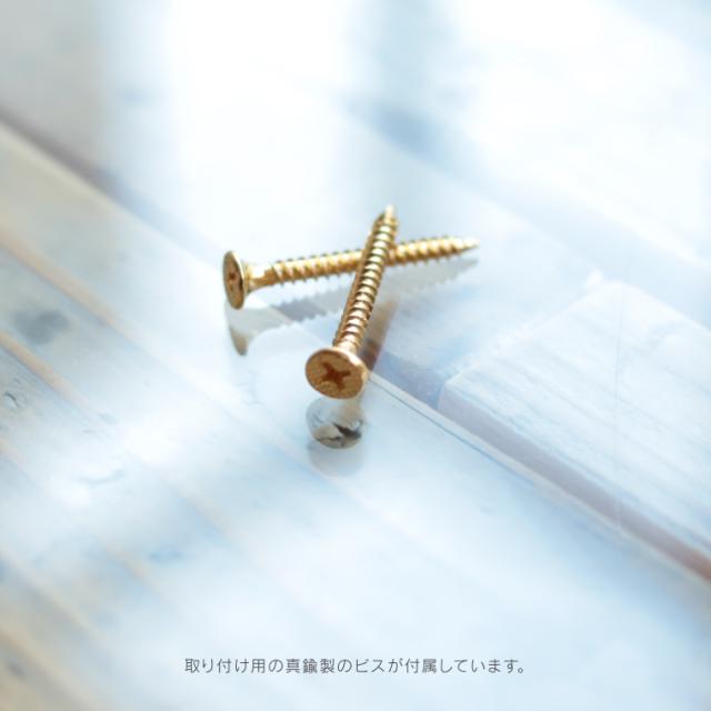 | 注意事項 | ●付属のビスで取り付けを行ってください。 ●壁の材質によってはアンカービスを使用し、取付けを行ってください。 ●色ムラ、シミ、キズ、擦れ、色の変化、黒ずみなどによる交換・返品はできかねます。予めご了承ください。 【真鍮製品のご購入にあたって】 真鍮の素材をそのまま活かすため色むらがあったりシミのように見える場合があります。商品によって一つ一つ異なりますが、製品の特徴として、また真鍮の変わりゆくアンティーク感としてお楽しみください。 また、素手で触れた部分は変色の原因となりますので、取付けの際はご注意ください。 |