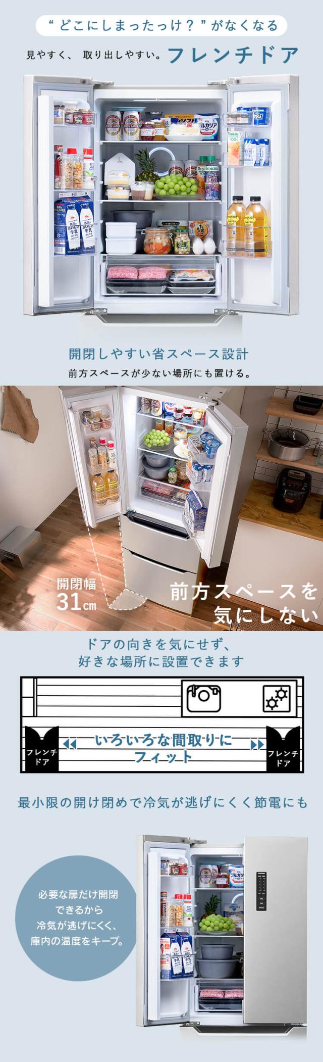 - 設置も、スムーズで、対応もよかったです。冷凍室が、多いのはいいですね。野菜室がないのが、慣れない面では少し、ありますが、使いやすいです。