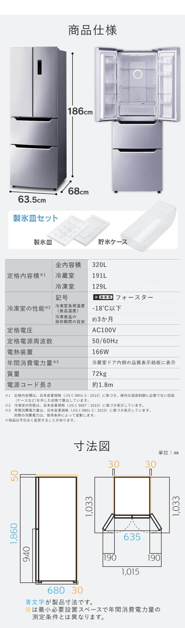 - 冷凍庫が、広いのは、欲しかったので購入して、満足してます。