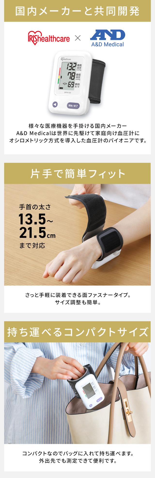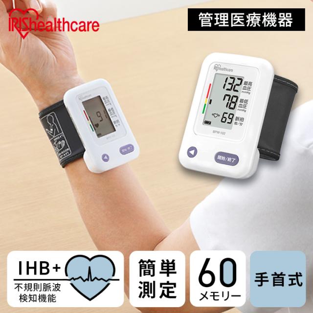 血圧計 手首 手首式血圧計 家庭用 手首式 簡単フィット 片手で装着 コンパクト 小型 軽量 持ち運び 大文字ディスプレイ 見やすい 簡単 操作 血圧測定器 血圧 自動血圧計 医療 介護 健康管理 アイリスオーヤマ BPW-102 * 【管理医療機器】