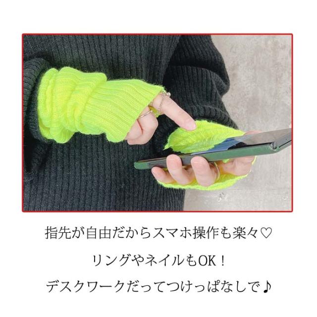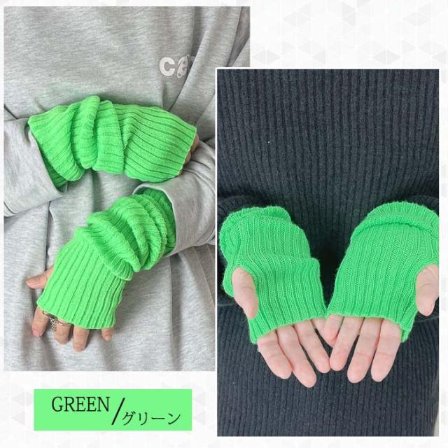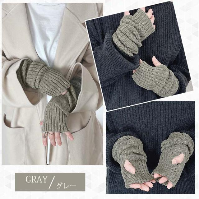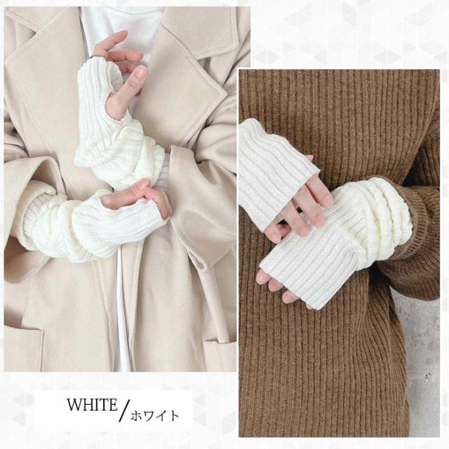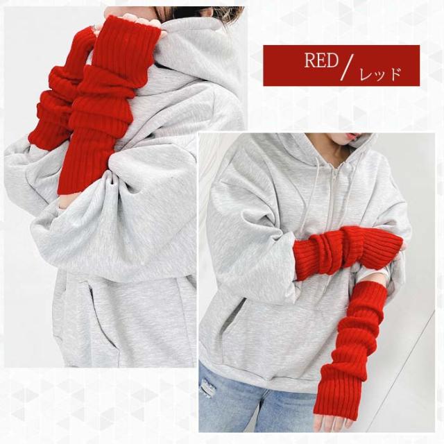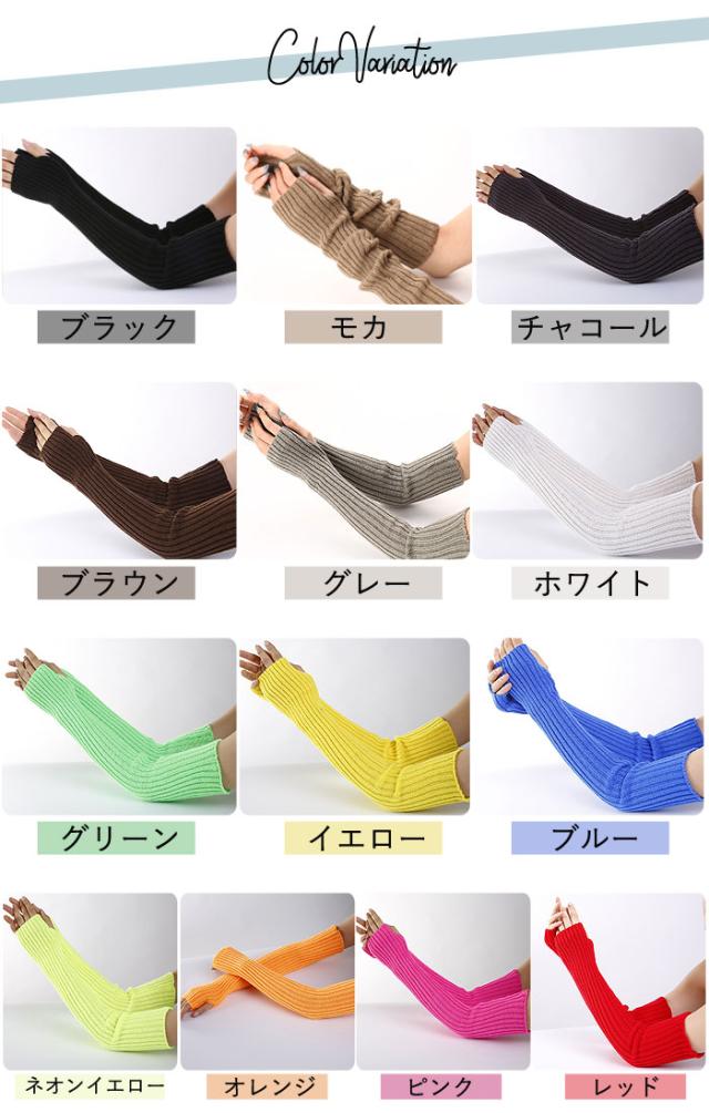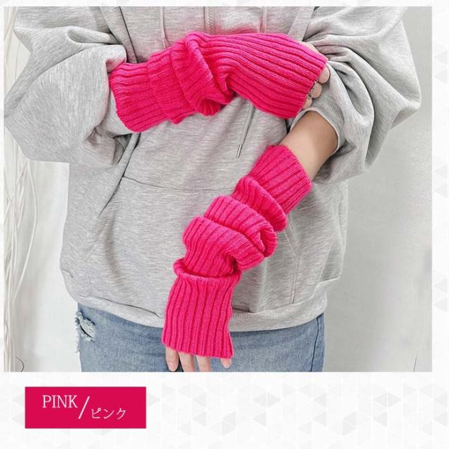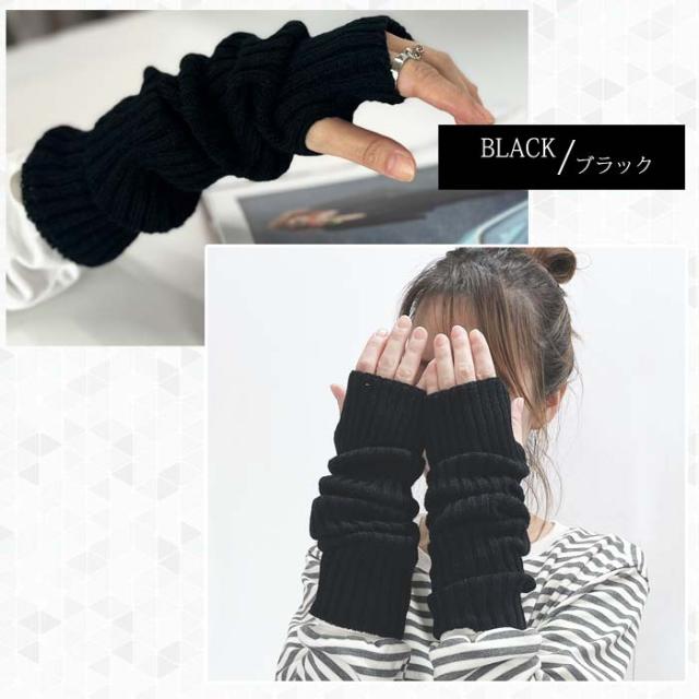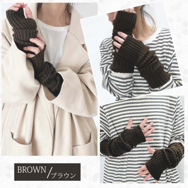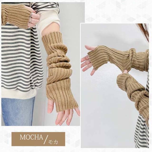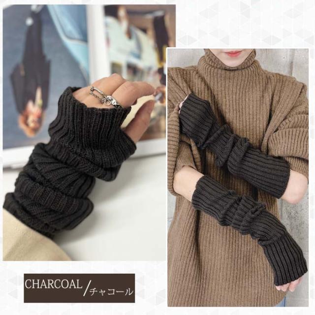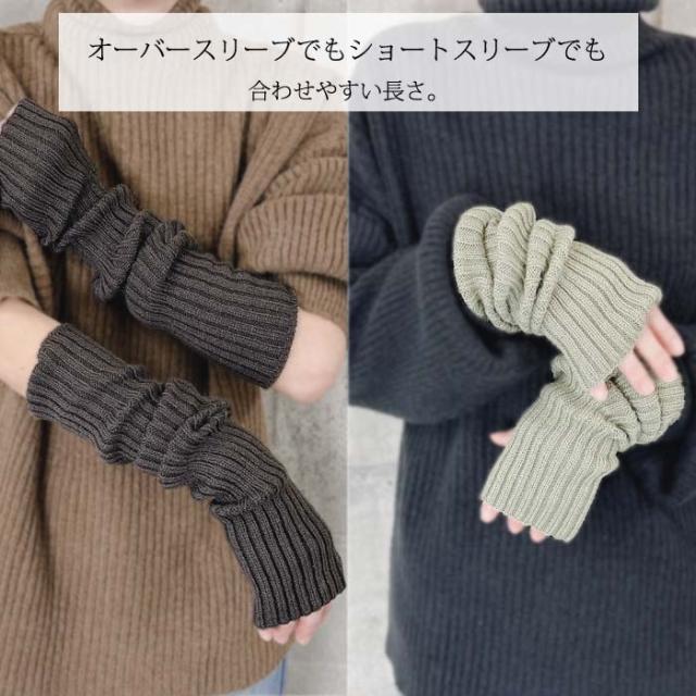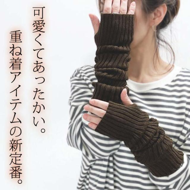 アームカバー アームウォーマー リブ編み 指穴 ロング 温活 ニット [郵1]^msz137^ ★