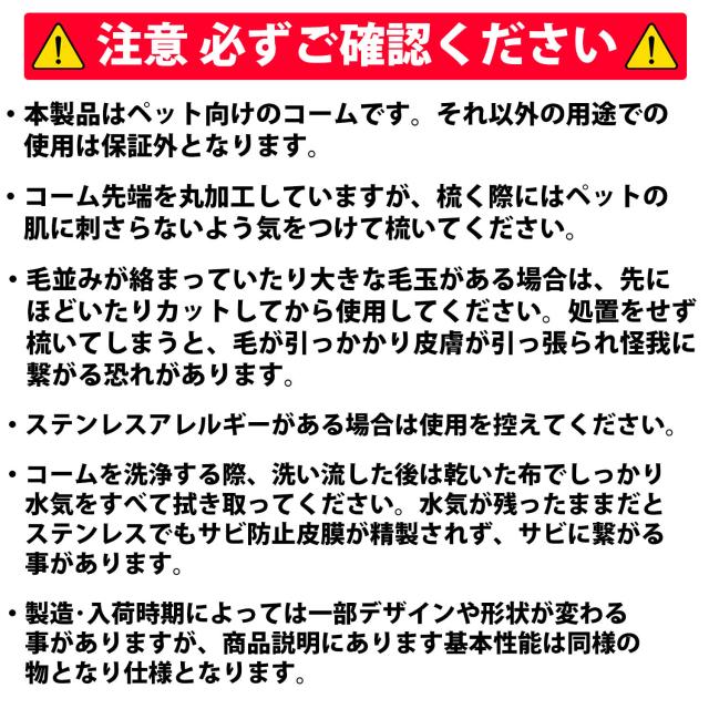 ・コーム先端を丸加工していますが、梳く際にはペットの肌に刺さらないよう気をつけて梳いてください。