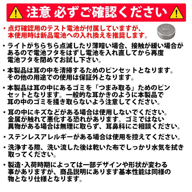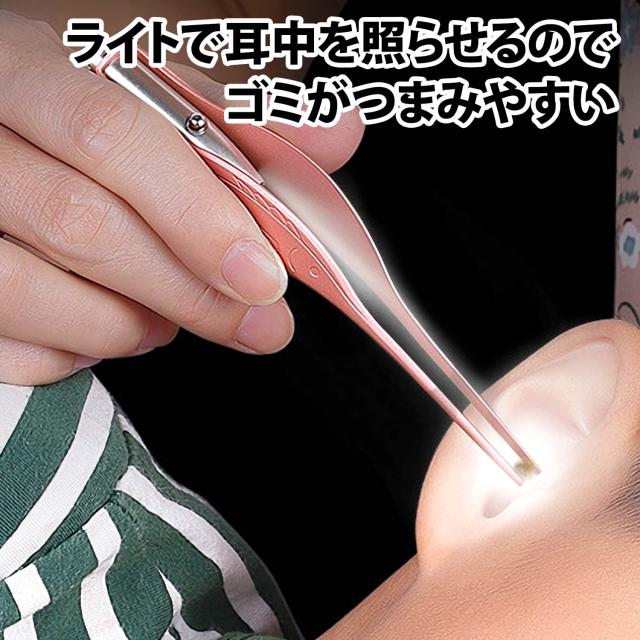 50%offクーポン有 耳かきピンセット LEDライト付き 子供 子ども 耳かき 耳掃除 ピンセット ステンレス 光る ライト 明るい よく見える 耳掻き みみかき 耳垢 耳鼻科 イヤークリーナー ボタン電池 LR41 LED