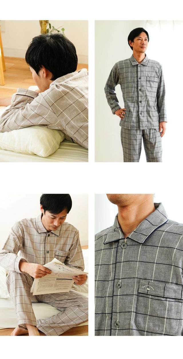 【2,200円値下!】パジャマ メンズ 父の日 敬老の日 紳士 綿100% 無撚糸 3重ガーゼ 長袖 長ズボン あったか 秋冬 通年 雲ごこち 日本製 ギフト