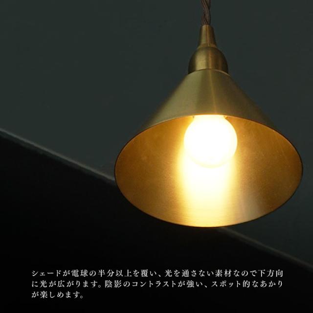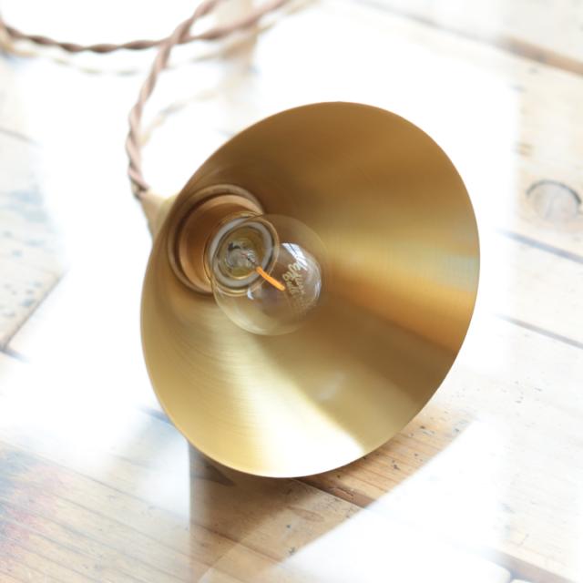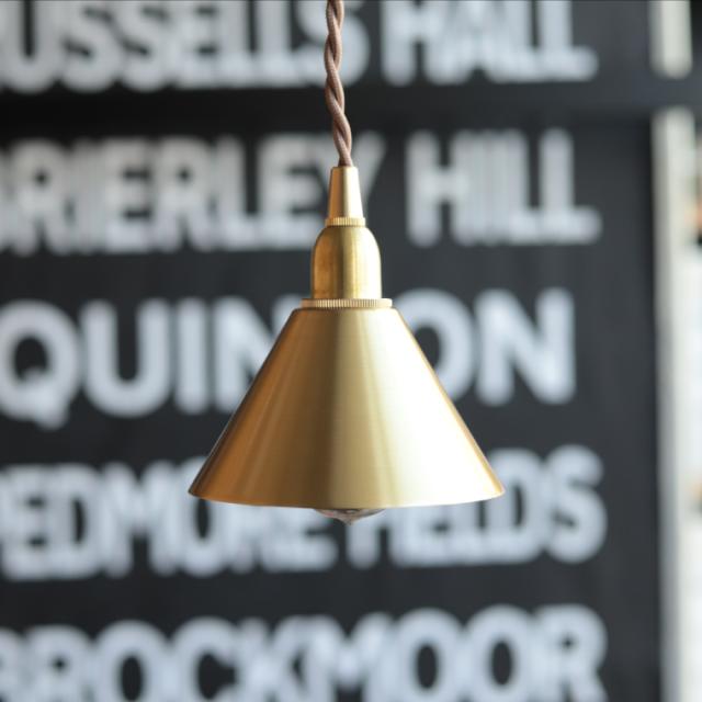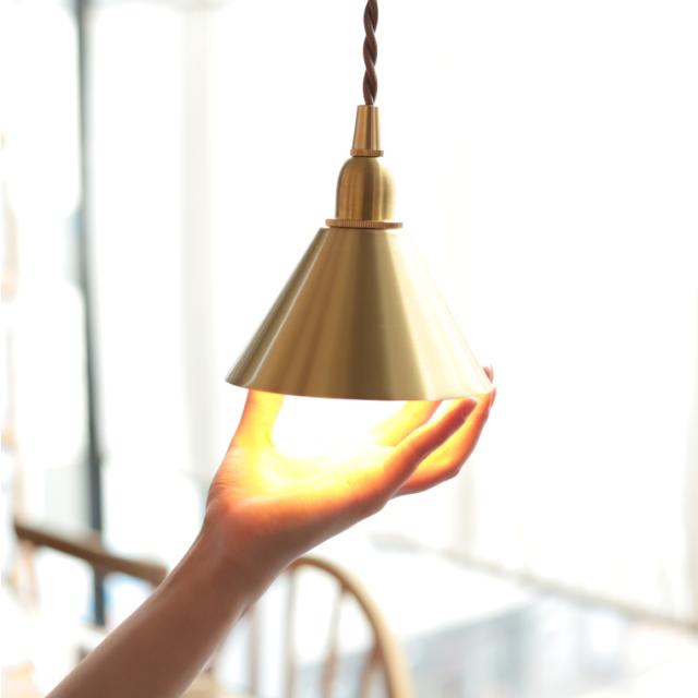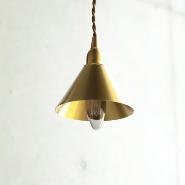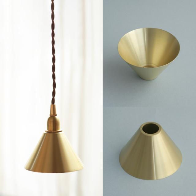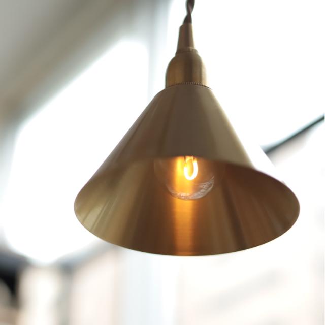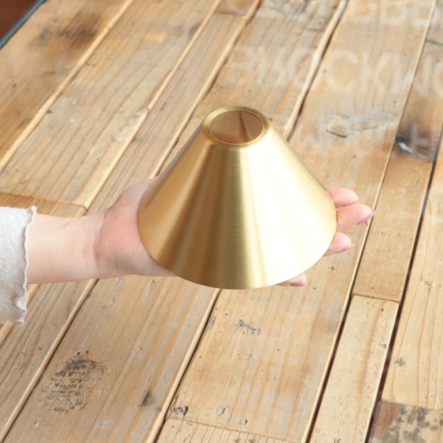 小ぶりながらも存在感のあるブラス(真鍮)素材の円錐型シェードです。