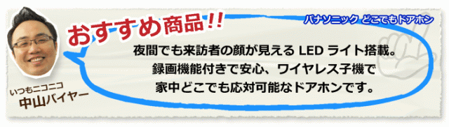 - 物騒な犯罪が増加している現在において テレビドアホン録画機能付のものは必須と感じました。取付けてからはセールスなど(特に映りたくない人)の訪問が減ったように思います。 子機も付いていて、子機でも応答出...