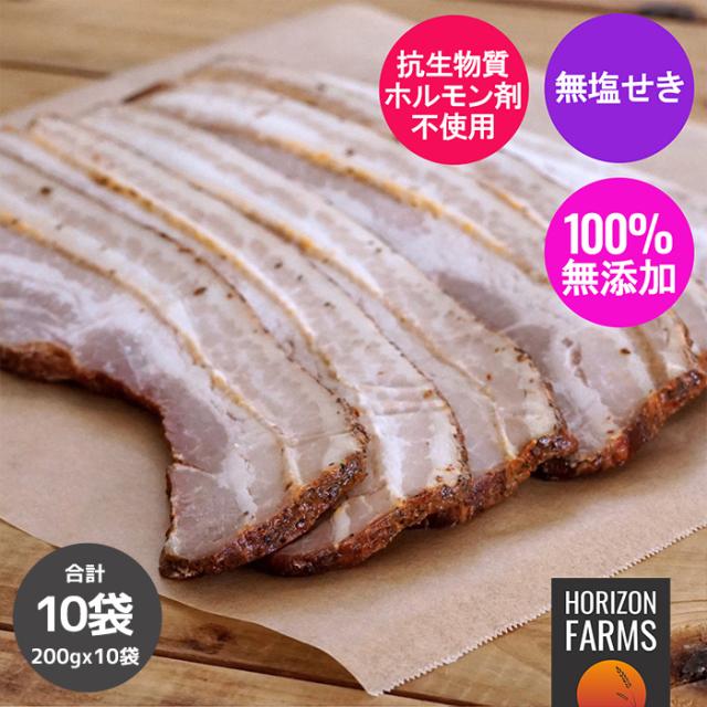 無添加・砂糖不使用 放牧豚 厚切り スモーク ベーコン スライス 200g x 10パックセット 合計2kg