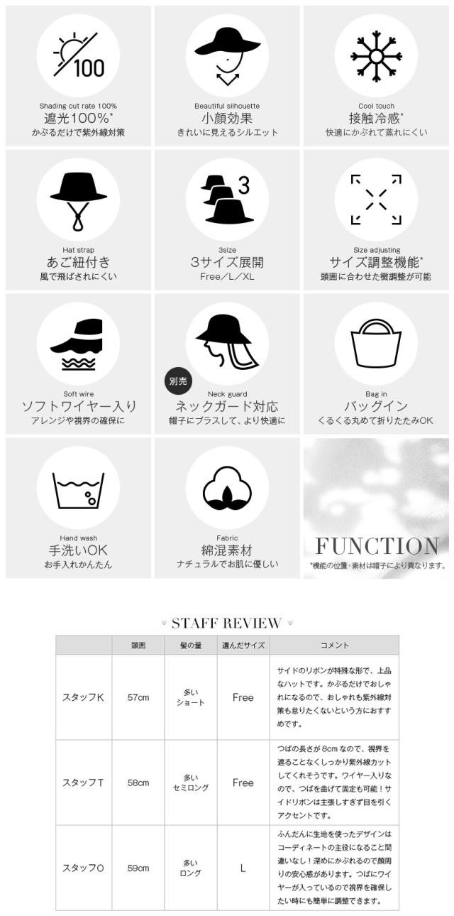 | ・高さはモデル着用時の高さを記載しています。 ・頭囲・高さ・つばのサイズ表記は、5ミリ前後の誤差が生じる場合があります。計測サイズは目安としてお考えください。 ・遮光生地の厚さには多少の差異があり、中にはシャカシャカと音がする場合があります。 ・お取り扱いの前に品質ネームタグの記載をご確認ください。 ・ご覧頂くモニターの発色具合によって実物と色が異なって見える場合があります。 ・単品商品の撮影画像が実際の商品と色合いが近くなっていますので、ご参照ください。 ・同商品でも、染色過程で色味が多少変わる場合があります。 ・マジックテープでのサイズ調整可能 ・つば先ワイヤー入り ・取り外し可能なあご紐付き |