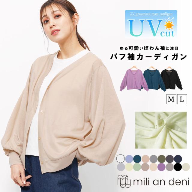 冬新作 UVパフスリーブカーディガン レディース uv カーデ UVカット 薄手 Vネック レディース カーディガン 秋冬 ミリアンデニ メール便(郵2) tc71080
