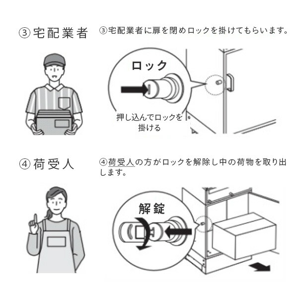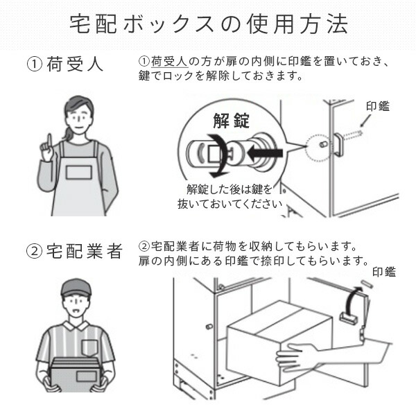 | 商品説明 | ●シンプルモダンなポスト付宅配ボックス ●置き配と郵便ポストの2WAYでご使用頂けます ●上段の郵便ポストは大きめの投入口を採用 ●下段には大容量の収納ボックス ●置き配にご利用頂けます ●レンガなどの重しを設置できるのでアンカー不要 ●安心の専用鍵付き ●セキュリティワイヤーロックで取付が可能 ●水が入りにくい構造を採用 ※完全防水仕様ではないため、吹き込みなどによる雨水侵入のおそれがあります ●付属品:セキュリティワイヤー(ダイヤル式鍵付き)、印鑑置き、宅配業者様向けメッセージプレート、上段用鍵×2、下段用鍵×2、プラスドライバー |