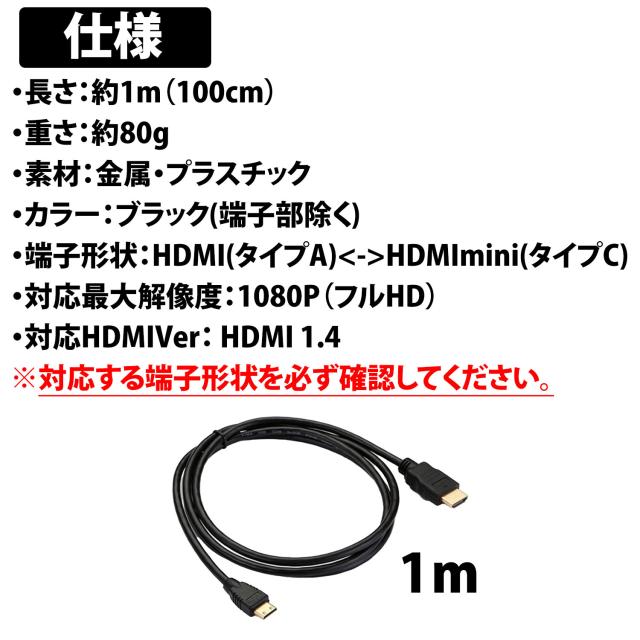 50%offクーポン有 HDMI mini ケーブル から HDMIケーブル 1m HDMIオス miniHDMIオス ケーブル パソコン PC モニター タブレット タイプA HDMIミニ MINI HDMI PC ビデオカメラ テレビ ver1.4 規格 タイプC 1080P TV ビデオ 映像 在宅 勤務 テレワーク